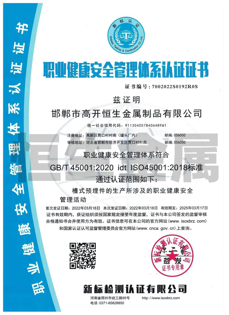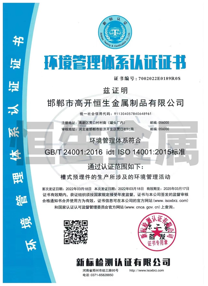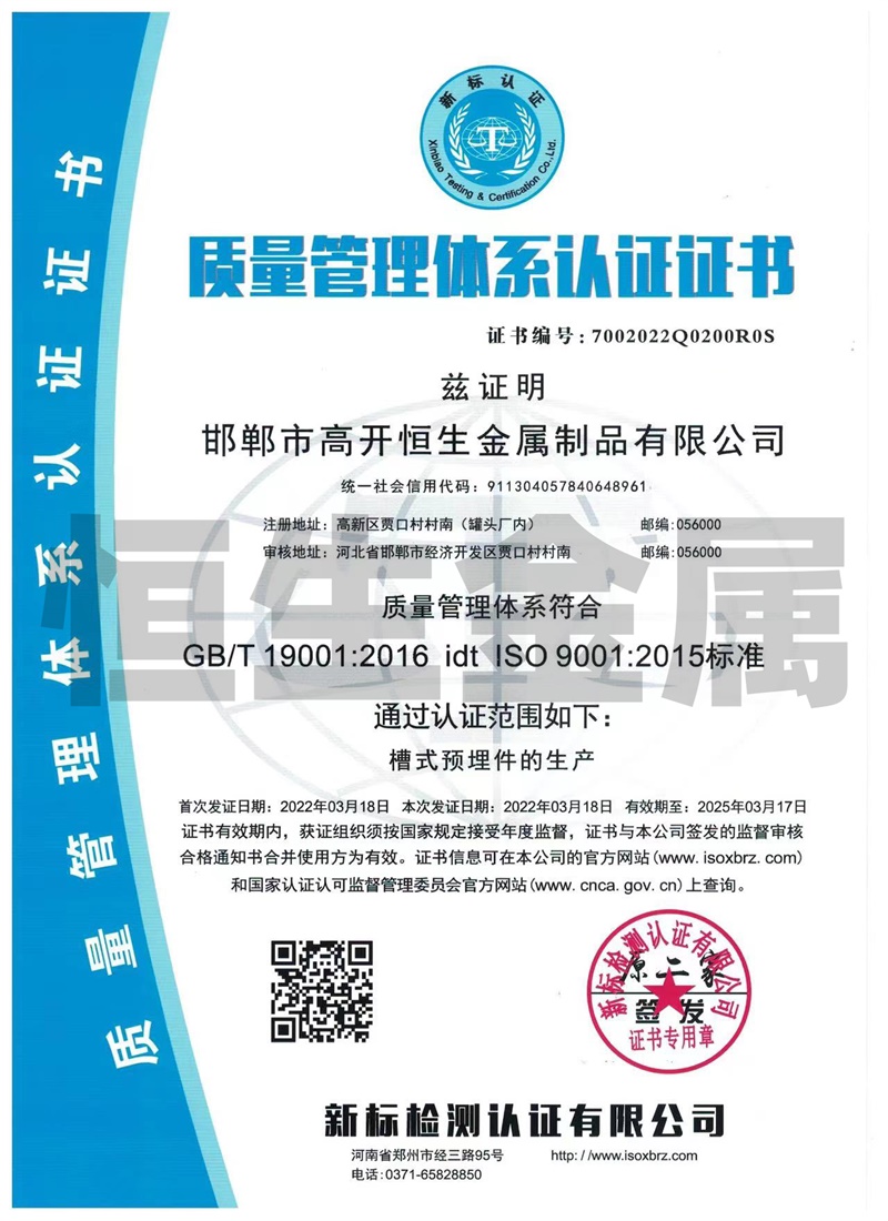 邯鄲市高開(kāi)恒生金屬制品有限公司總部設(shè)在鋼城河北邯鄲,西鄰京廣線(xiàn)、東臨京深高速,地理位置優(yōu)越,交通比較便利。 我廠擁有多年生產(chǎn)預(yù)埋槽道的產(chǎn)品生產(chǎn)經(jīng)驗(yàn),專(zhuān)業(yè)生產(chǎn)鍍鋅防腐槽型預(yù)埋件系列產(chǎn)品,其中產(chǎn)品包括:高開(kāi)恒生哈芬槽、哈芬槽鋼、預(yù)埋槽道、預(yù)埋滑槽、帶齒預(yù)埋槽鋼、槽式預(yù)埋件、工字鋼材料、C型槽材料配套的T型螺栓,也可根據(jù)客戶(hù)需求按圖訂做加工,產(chǎn)品廣泛應(yīng)用于隧道、城市軌道交通、地下綜合管廊、建筑幕墻施工工程。